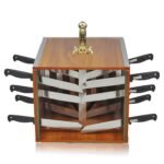 A person (the magician or a volunteer) places his or her head inside a special box. The magician then thrusts one or more swords into the box – making it look as if the swords are ripping the person’s head right through it. But when the swords are taken out and the box is opened-the man comes out safe and smiling!