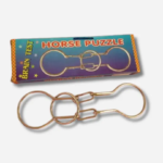 This is a metal puzzle consisting of two horseshoes and a metal ring inside the chain. You need to remove this ring from the horseshoes.