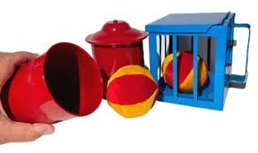 The magician shows the audience a box with a ball in it, an open square box. Then he takes the ball out and puts it in a cylinder and covers the cylinder.Then he takes the empty box open from three sides in his hand and does some magic, the ball comes back in the empty box. When the cylinder is opened it is empty